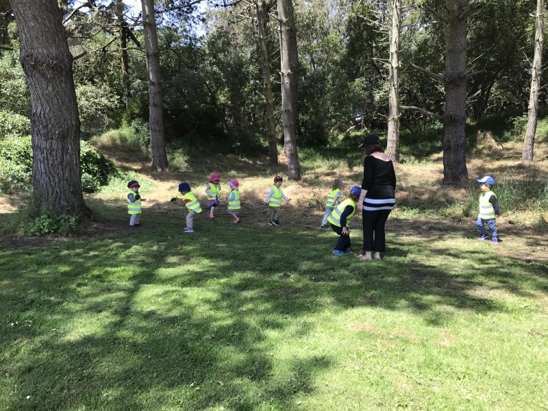 Transition to outdoor activities: Outdoor play structures, climbing, jumping, fresh air, group games